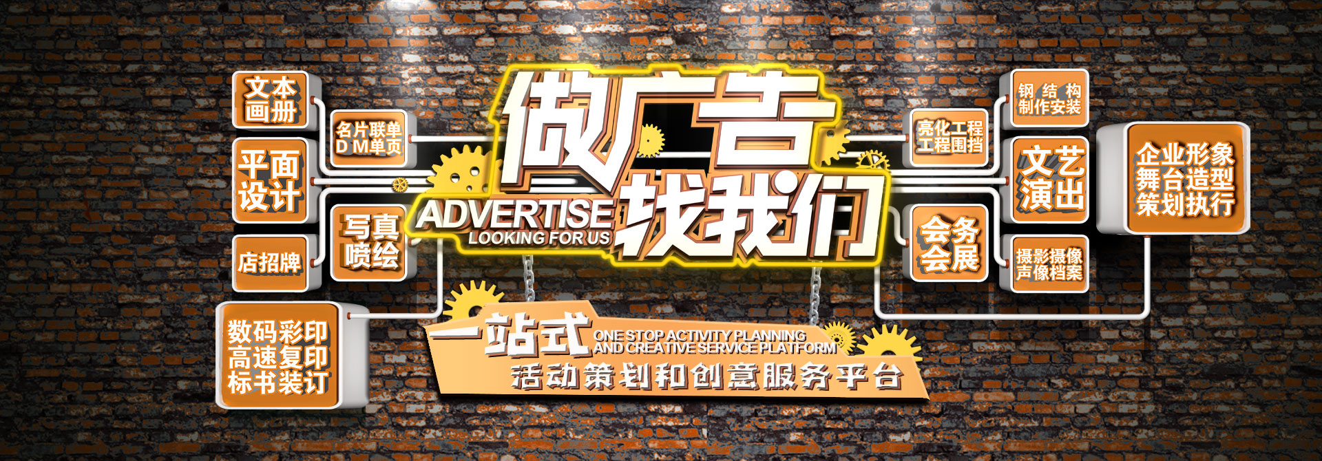 2018年公司在溧阳市首家推出“一站式活动策划和创意服务”平台。内容主要涵盖图文设计、制作,文艺演出,影视文化艺术交流活动策划,舞台艺术造型策划,企业形象策划,庆典活动策划,体育赛事策划,会务会展,摄影摄像,礼仪服务,档案资料音频、视频制作,档案整理服务,档案软件数字化加工等。